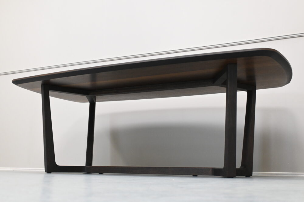 扇状に象られたレッグに対し、一本の梁でつなぎ合わせたデザインにより、他に類を見ない唯一無二の存在感を放ちます。